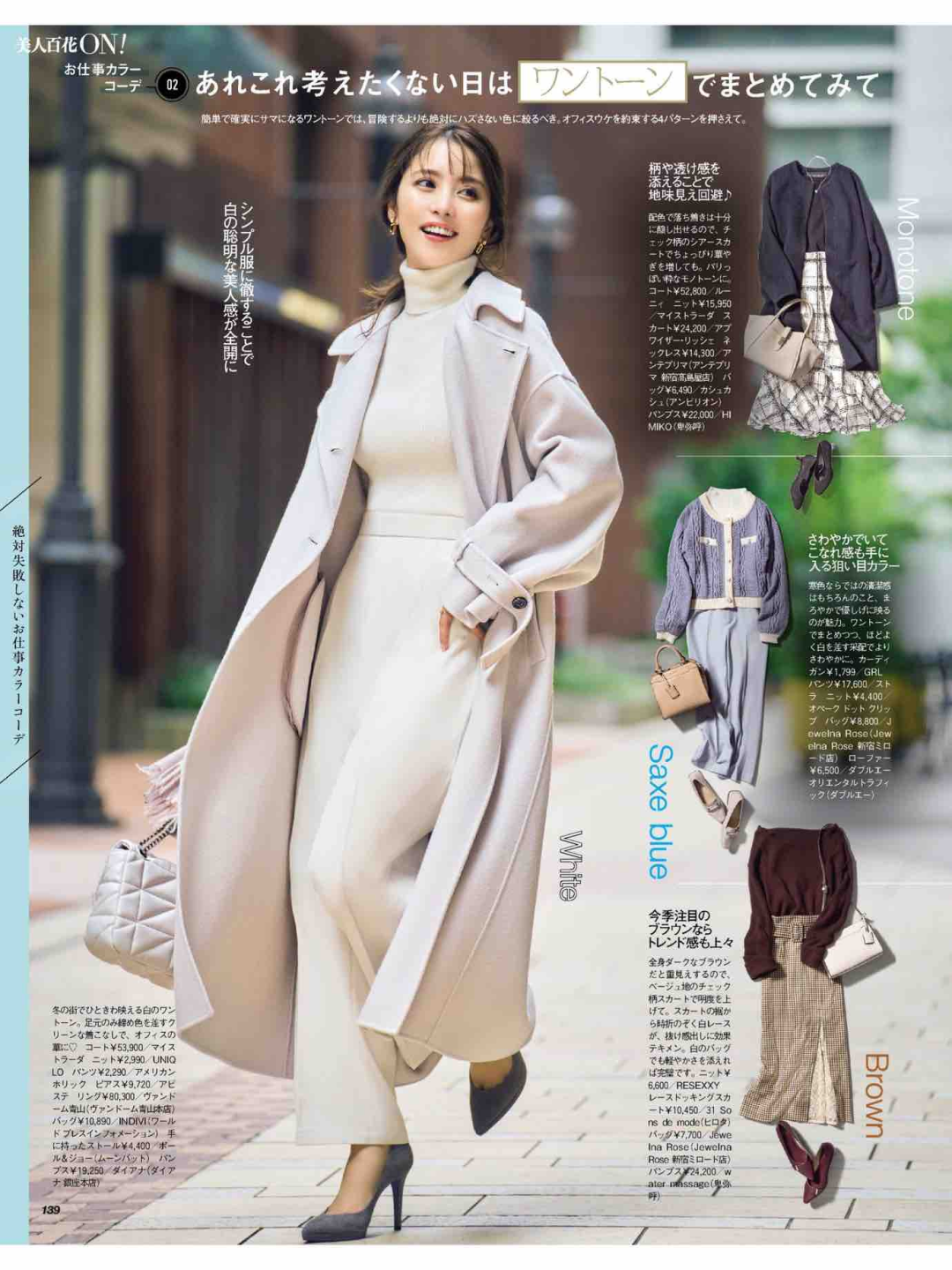白色羊毛大衣+高领毛衣,直筒羊毛裤,上短下长凸显好比例。