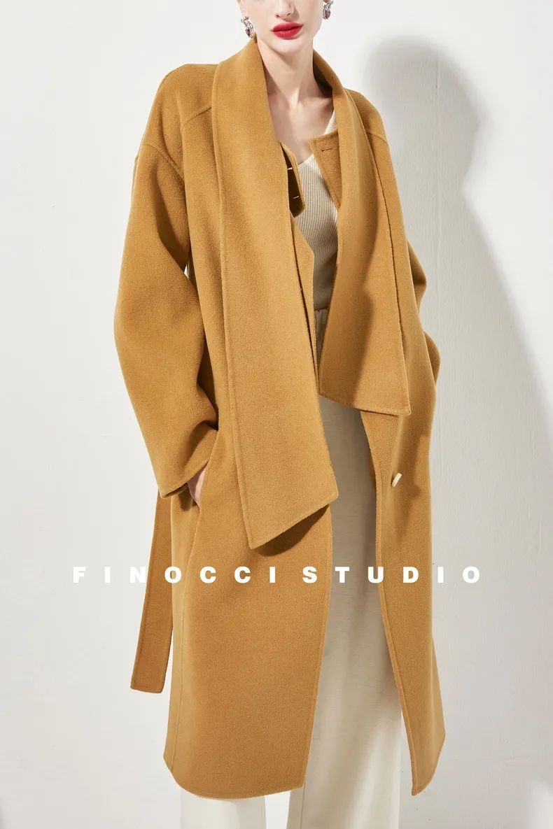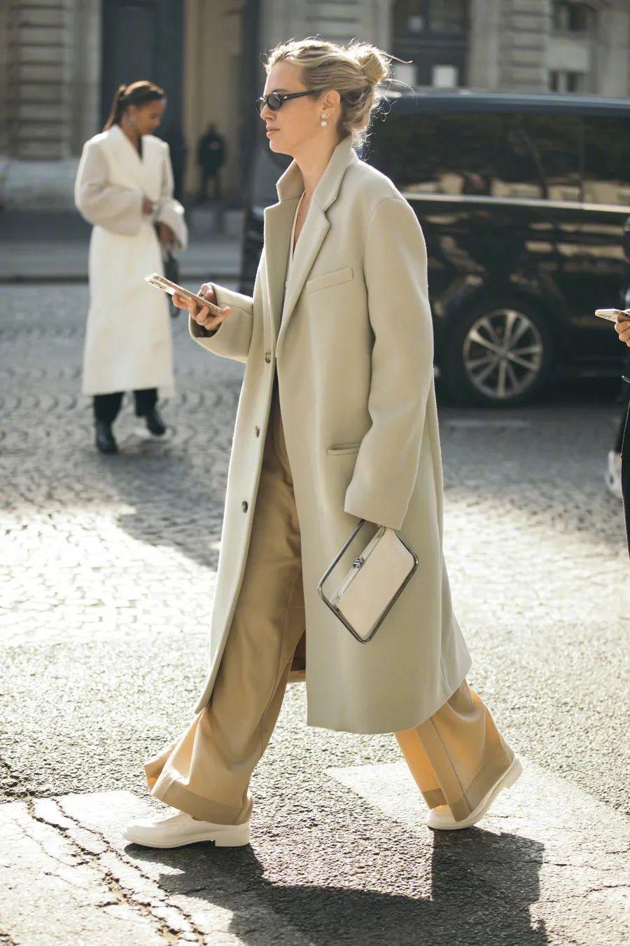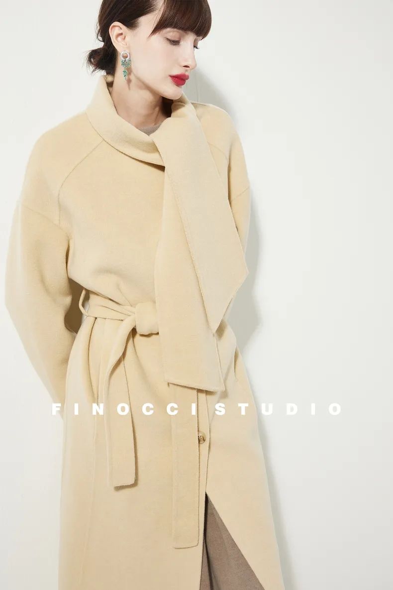 长款羊绒大衣对身材包容性很好, 搭配了一套浅色内搭,轻松穿出气场穿出风格。