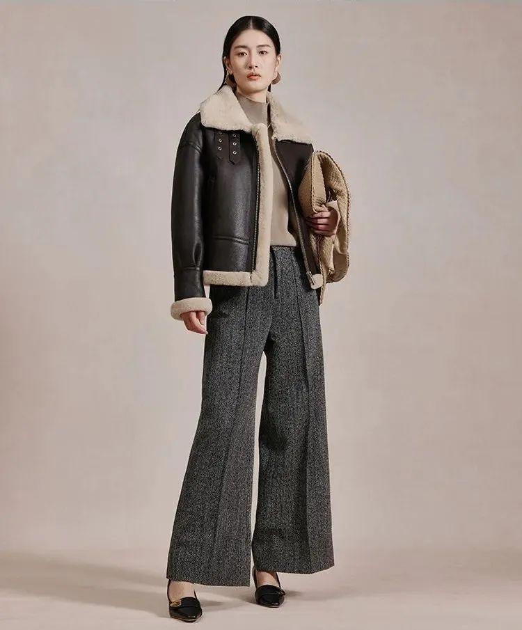 风度与温度兼备的机车皮外套,既拥有毛绒材质的柔和感,还具备机车皮衣的帅气属性,两种冲突元素的材质碰撞,颇具时尚态度。