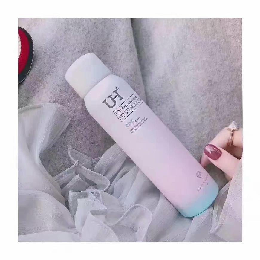 uh喷雾用着是真心油腻,黏糊糊的感觉,而且平时小编是多处于室内居多,很少涂着它运动,所以这个油腻腻不能接受。再就是美白作用,哦是挺,但是也了吧,接受无能。而且现在想想这个品牌感觉就像微商的套路似的,所以不会回购!