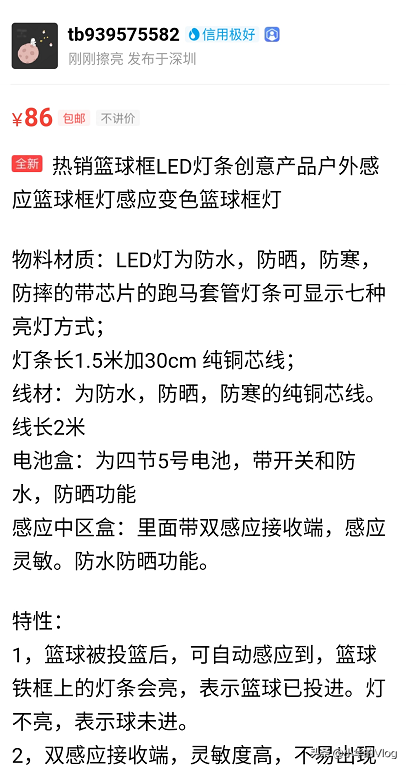 1,篮球被投篮后,可自动感应到,篮球铁框上的灯条会亮,表示篮球已投进。灯不亮,表示球未进。