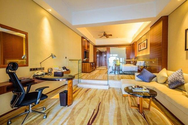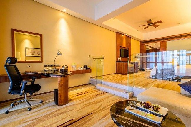酒店336间客房全部为海景客房或套房。入住酒店就等于拥有了一间70+平米沉降式带观景阳台的超豪华客房。所有房间设计全部朝东面向大海。躺在床上便能远眺海景,站在阳台就能拍到海上日出的美景。房间装修豪华设施齐备。配备超大浴缸,晚上玩耍归来美美的泡上个热水澡。