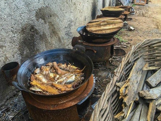 大铁锅,柴火顿出来的鱼,味道和电磁炉和不粘锅做出来的不一样。