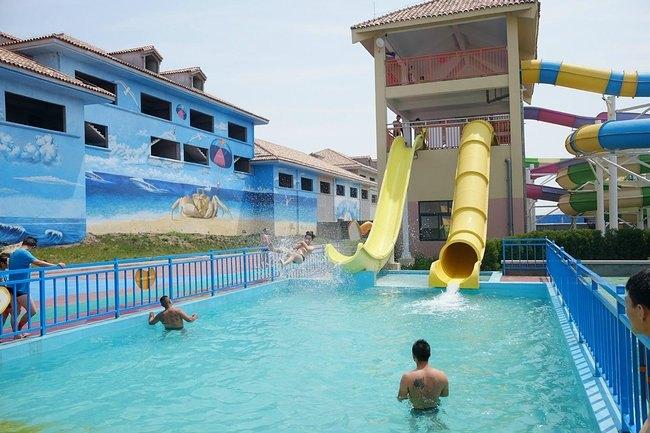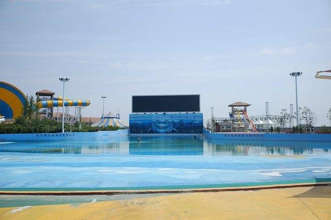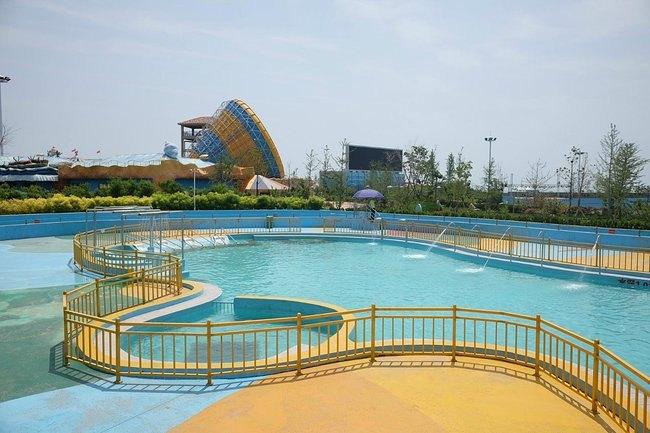 介绍完刺激,我们再来点想对缓和的吧。这是园中心位置的放松池,水深约半米,不喜欢刺激的项目可以在此放松休息,躺在水疗椅上晒太阳。