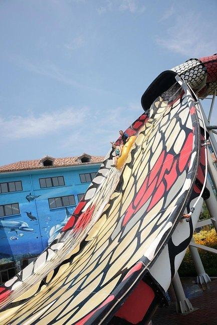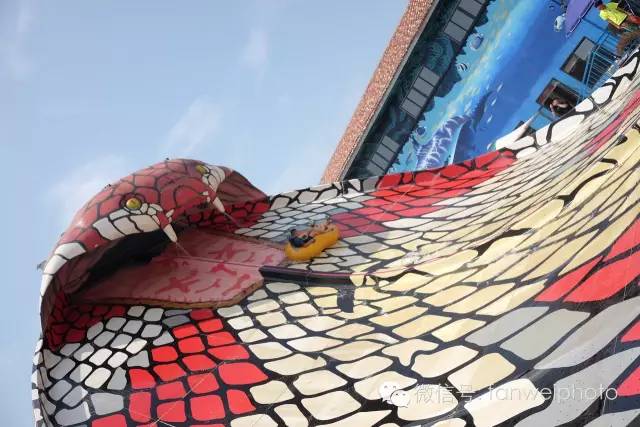 神马,还觉得不够刺激是吗,好吧那就来试试这个挑战吧。这个看似其貌不扬的绿色管子可以园区里刺激的哦。刺激在工作人员会问你准备好了没有,当你说准备好时会突然抽出你脚下的隔板,然后你整个人就如失重一般接近垂直下落。更刺激的是巨大的冲量会让你顺着管子飞到高处画个弧线再落下来。后从图中的出口出来。艾玛听着就有点刺激,可惜当天这个设施检修没有开。不然说不准老范会去体验一把。据说体验过这个的人说玩过它就觉得别的完全没有刺激的感觉了。不要怂,过来挑战一下吧。哈哈哈。
