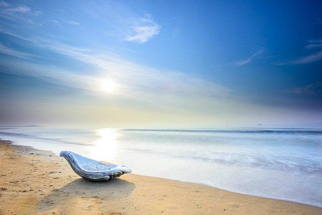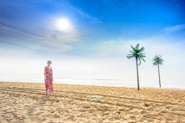 到了楼下海滩上的人很少。一天之中也只有这段时光能让你在旅途中获得难得的清净与自在。在海边的沙滩上漫步,找个小景色给自己来几张自拍。