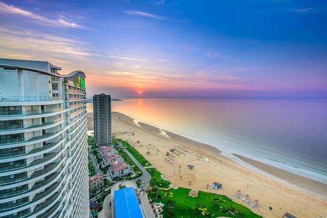 能满足需求的目地锁定在北京周边的海滨城市中。进一步缩小到了青岛、烟台、威海几个城市。终锁定在了烟台以南,青岛以北的海阳市。在海阳市有一家由中国十大地产品牌斥巨资打造的五星级酒店——碧桂园十里金滩酒店。地点get√。
