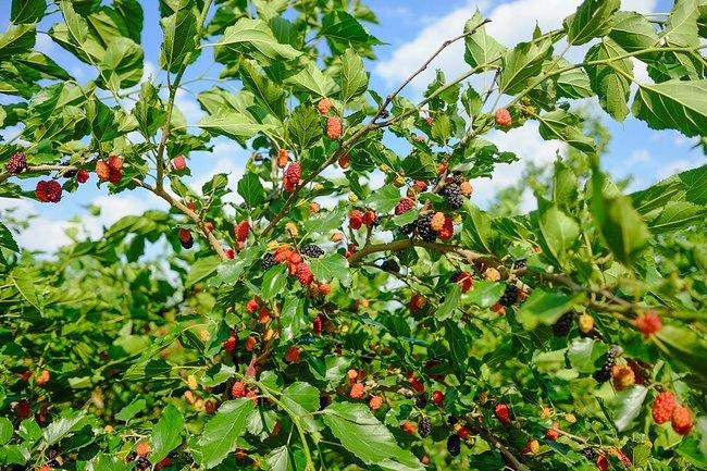 进入桑葚林里可以随意吃和尽情的采摘,后按采摘的重量结算,根据不同品种价格在10-15元/斤。采摘时要注意哦,因为桑葚的染色力特别强,尽量不要穿着怕染色的衣物或者提前准备一次性雨衣。