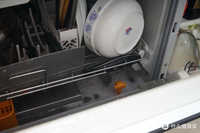 第一遍的洗涤洗碗排水脏,并且有一些泡沫,以至于我觉得这一块对6套洗碗机来说可能确实量足了一些。