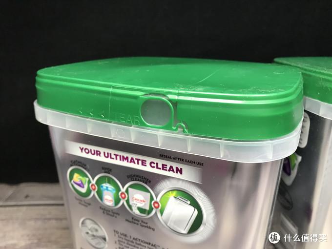 侧面则是洗碗机推荐使用的厂商以及北美第一推荐的标记,中间位置带有1:1的凝胶图示,让我想起来乐高包装盒上的1:1颗粒展示。