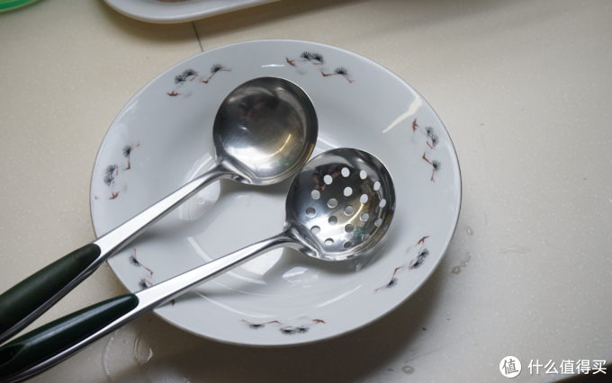 当拿出来两个勺子的时候,我看到了这款产品的强大。特别是右侧漏勺,由于使用频率比左侧汤勺要少一些,没有那么多的磨损,真的是有些亮的发光。