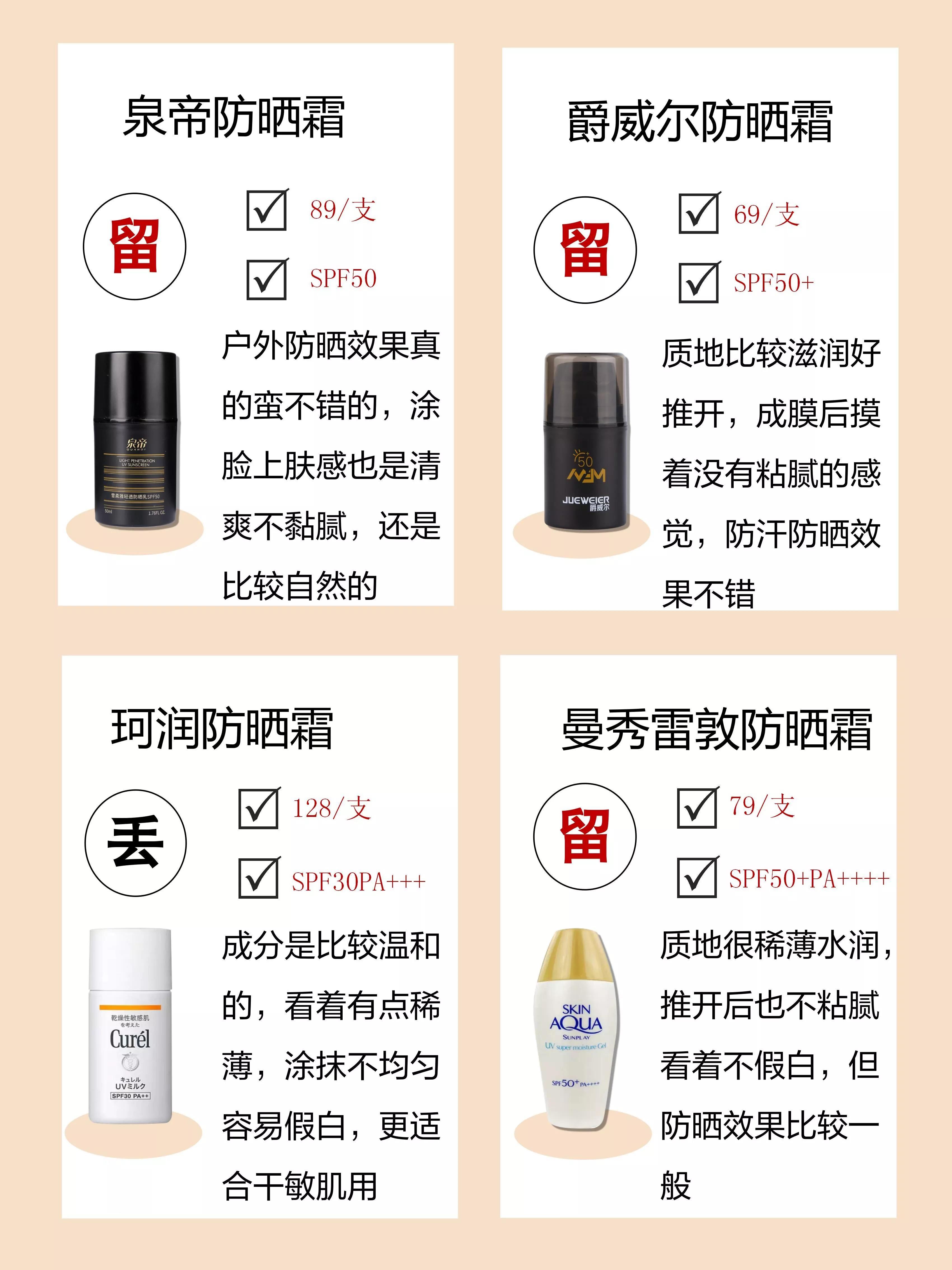 国际二线及以上品牌均可,但级别越高价格越贵,好用的是HR,其次是考降六权谁剂坏制并兰蔻。关键问题是护肤程序很重要,至少要做好卸妆﹑洁面只河斯突月参﹑面霜护理﹑防晒乳(晚间须卸妆)保护和每周去相双调冲只用果角质,否则再好的护肤品也难以起到应有的作用。人气热防晒霜名单大曝光!赶紧快来看看你的防晒是丢还是留