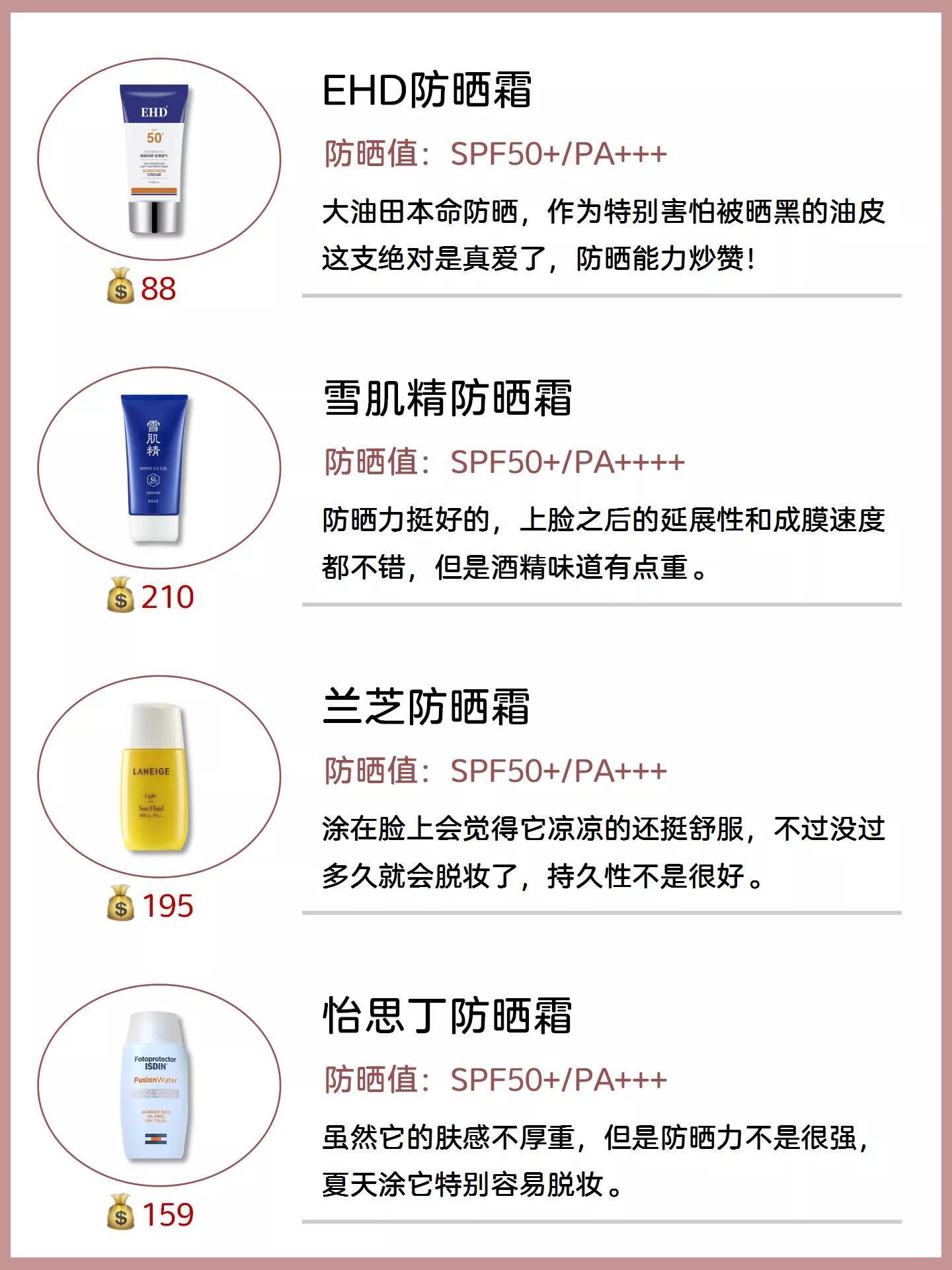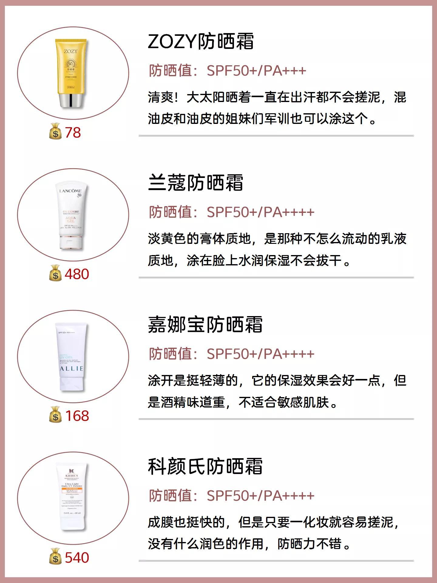 第一款安耐晒金瓶防晒,对于长期户外活动的妹子来说,必须pick!第二款碧柔水感防晒,清爽得不行。第三款怡丽丝尔防晒乳,暂时是我心目中的第一爱!第四款Ultrasun防晒霜,质地完全清爽。第五款资生堂蓝胖子防晒霜。