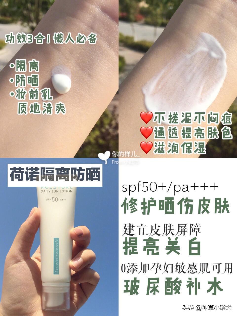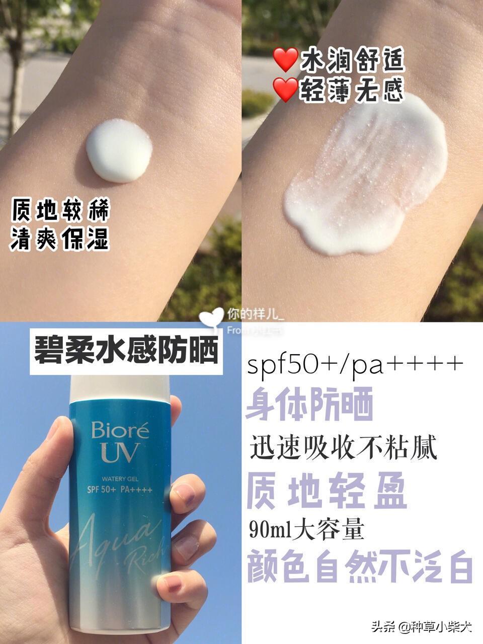 这款防晒主要就是便宜,各方面都做得比较好,但都不是好的。但是性价比很高,而且SPF倍数到了130。轻轻推开就会在皮肤表面形成一层隐形的保护膜,是那种水润自然的使用感,不会对皮肤造成负担。清爽度比较好,但是防水度比较一般。这款也SPF 30的,可以日常用。