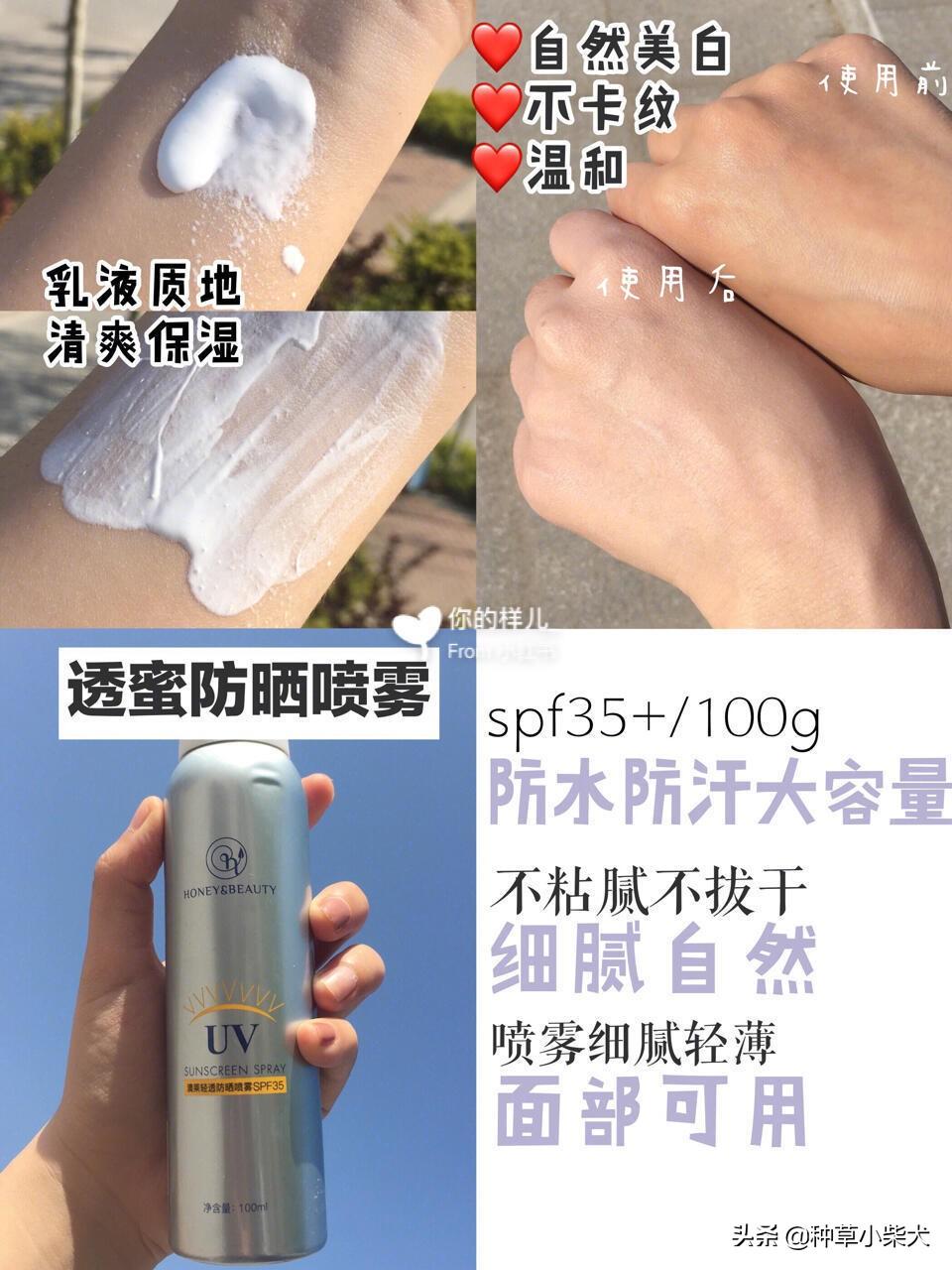 有着86年悠久历史,防晒喷雾相对于防晒霜使用起来更方便,随时随地都可以补充防晒这款防晒全身都可以用,spf50的高倍数,防水防汗,有一股甜甜的少女花香,喷雾细腻均匀,适合任何肤质,妆后补喷不会花妆。
