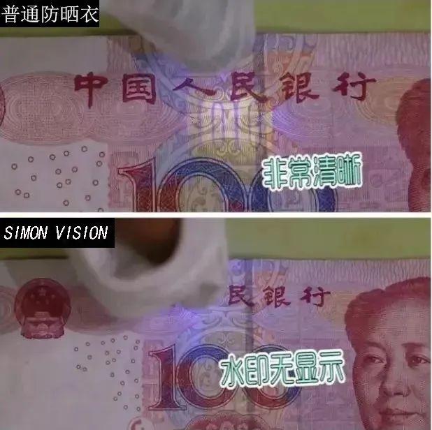 隔着普通防晒衣的面料,依然能清晰的照出防伪码;而隔着SIMON VISION的面料,丝毫照不出防伪标志,足以证明它隔离紫外线的果贼强!