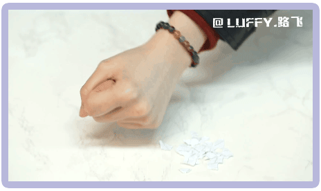 将手背用力按到碎纸屑上