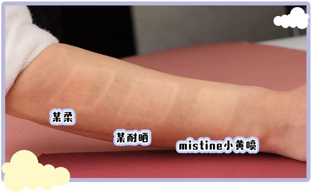 看,右边喷了mistine防晒之后