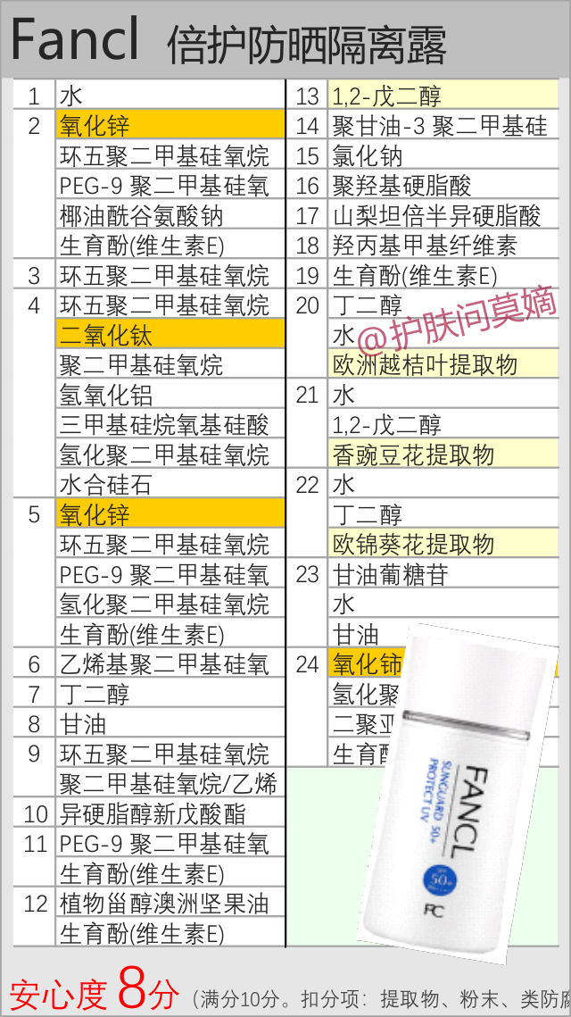 之前说过一些的/热销的化学防晒霜,虽然肤感都不错,防晒果也都不错,但对皮肤的安心度略低一点, 少数人用了后会出现熏眼睛的情况。