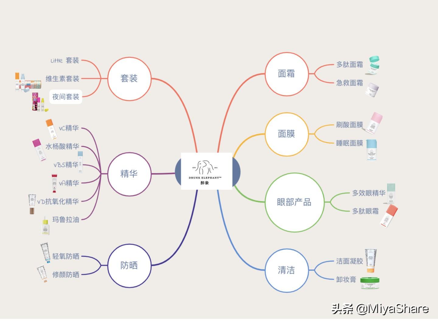 醉象的整个产品线,Miya按照产品种类做了一个思维导图,供大家参考: