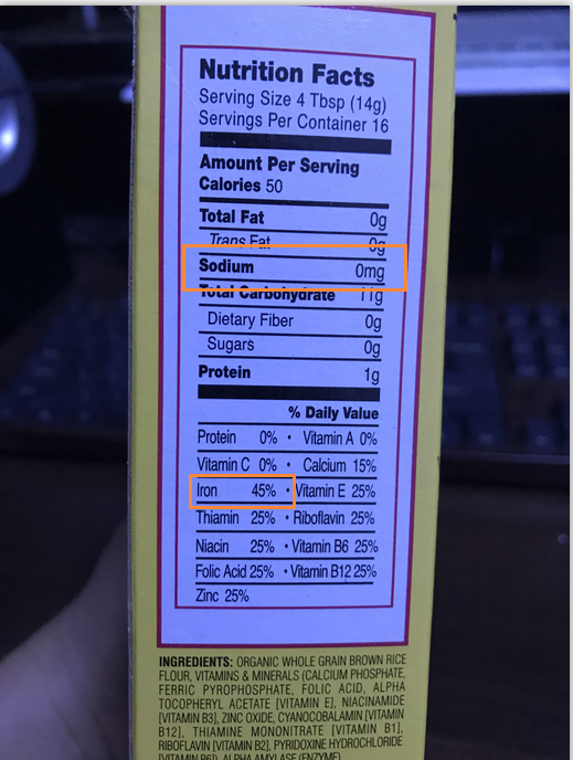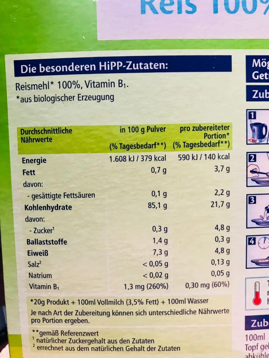 后再提醒一下大家,德国喜宝原味大米粉没有经过铁强化!美国禧贝有机糙米米粉按推荐食用量铁含量低!前者好配合其他含铁辅食轮流吃,后者好根据实际情况加大每餐食用量。