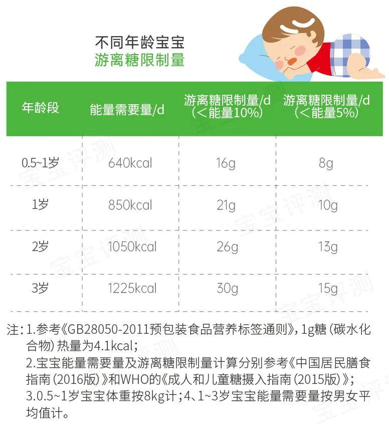 但《中国居民膳食营养素参考摄入量(2013版)》和《中国居民膳食指南(2016版)》均未给3岁以下的宝宝设定添加糖的限制摄入量。