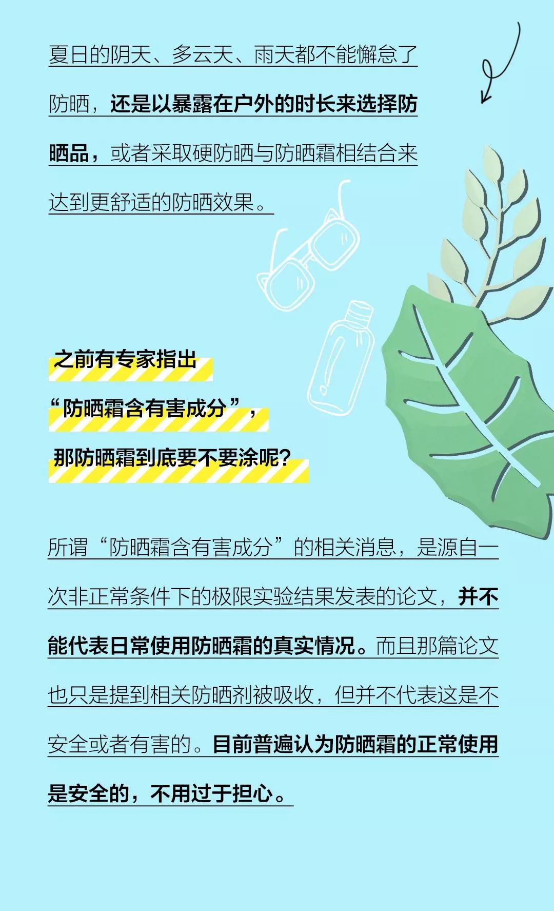基础颜究:防晒霜的主要作用是防止晒伤、晒黑以及光老化,但是使用不当也可能会导致过敏或者刺激。所以应该根据自己的皮肤状况和环境,选择是否需要使用以及使用合适的防晒产品。