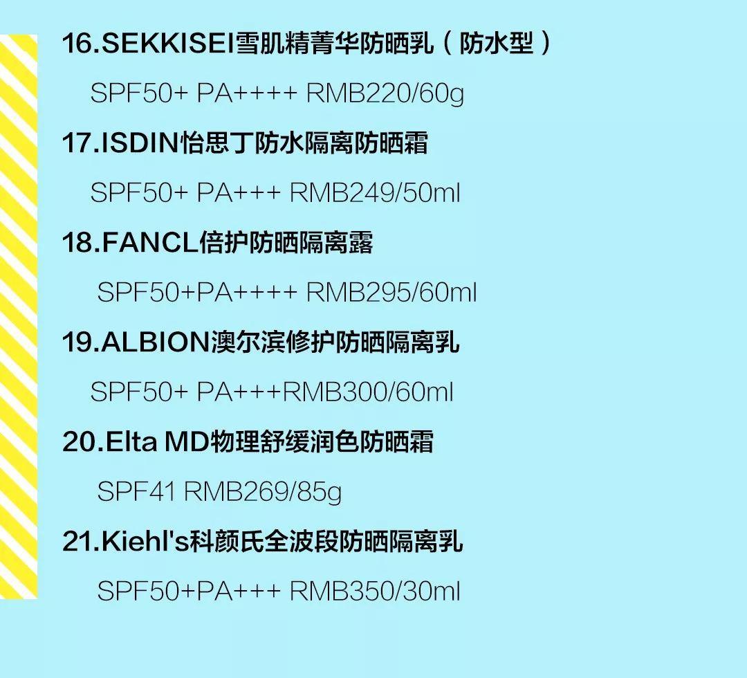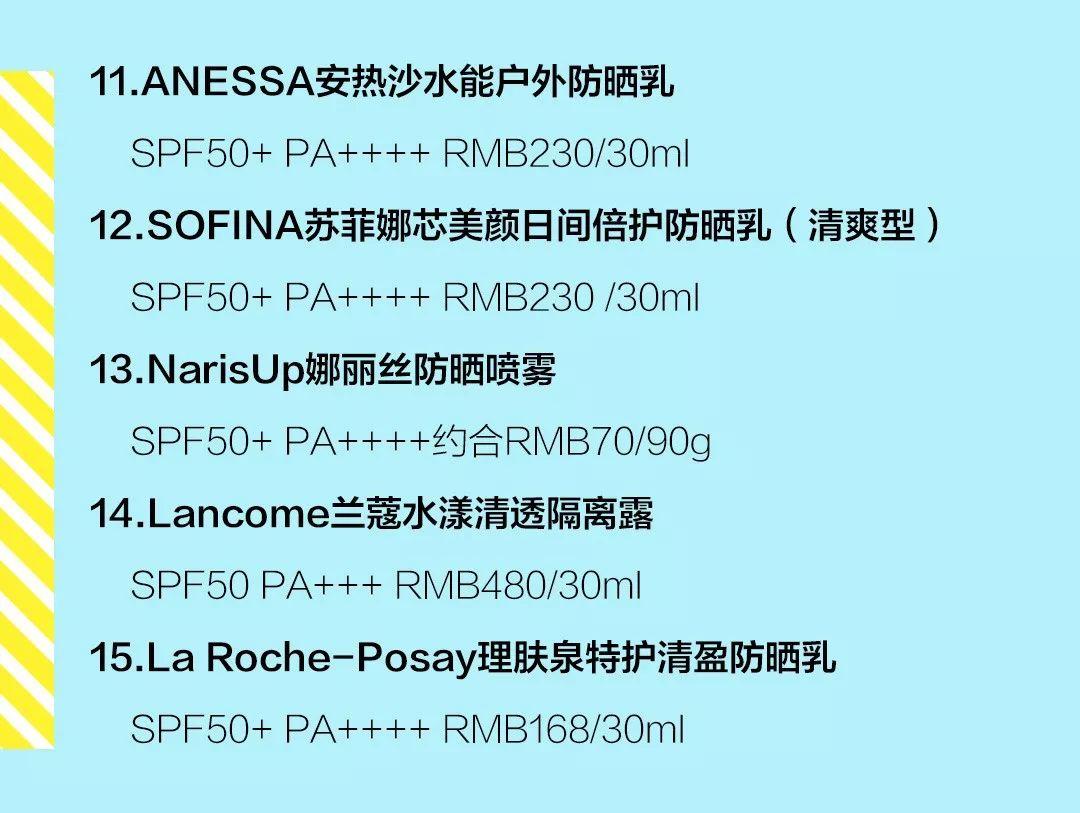 ▵1.资生堂:摇摇乐防晒霜,水状质地,流动性很好,易推开,涂抹后皮肤很快吸收,成膜快速,不泛白,清爽无油光,呈现原本肤色。