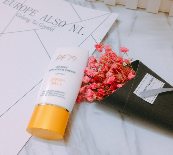 DR PLANT植物医生晒精灵系列之防晒乳,本来我对它的防晒喷雾的兴趣更高一点的,结果后面还是买了防晒乳,因为它的头是海绵设计的那种,不用手去直接接触啊,方便啊同志们,橙色的包装看着很亮眼,防晒乳是白色乳液质地,是物理防晒和化学防晒结合的,同时有霍霍巴籽油配合水解透明质酸,补水又锁水,减少晒后水分流失速度,SPF30+和PA+++,跟其他的防晒比起来也不差,用后有点修饰作用。PF79海肌研水嫩润颜防晒霜