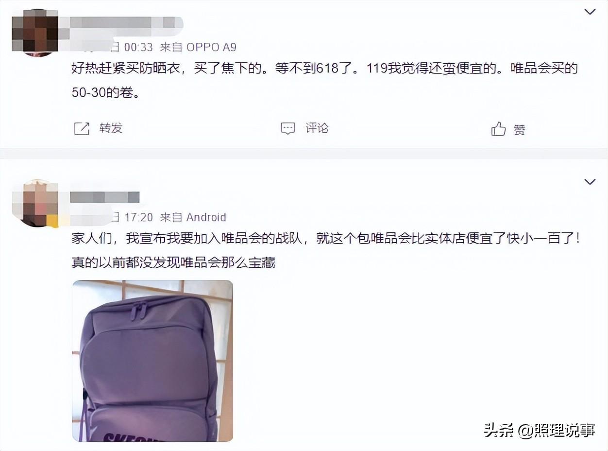4月以来,部分地区升温,有网友在唯品会入手某大品牌的防晒衣,竟然比其他平台优惠了30—50;还有小姐姐安利大家加入唯品会战队,一模一样的品牌双肩背包,唯品会快便宜了小100。
