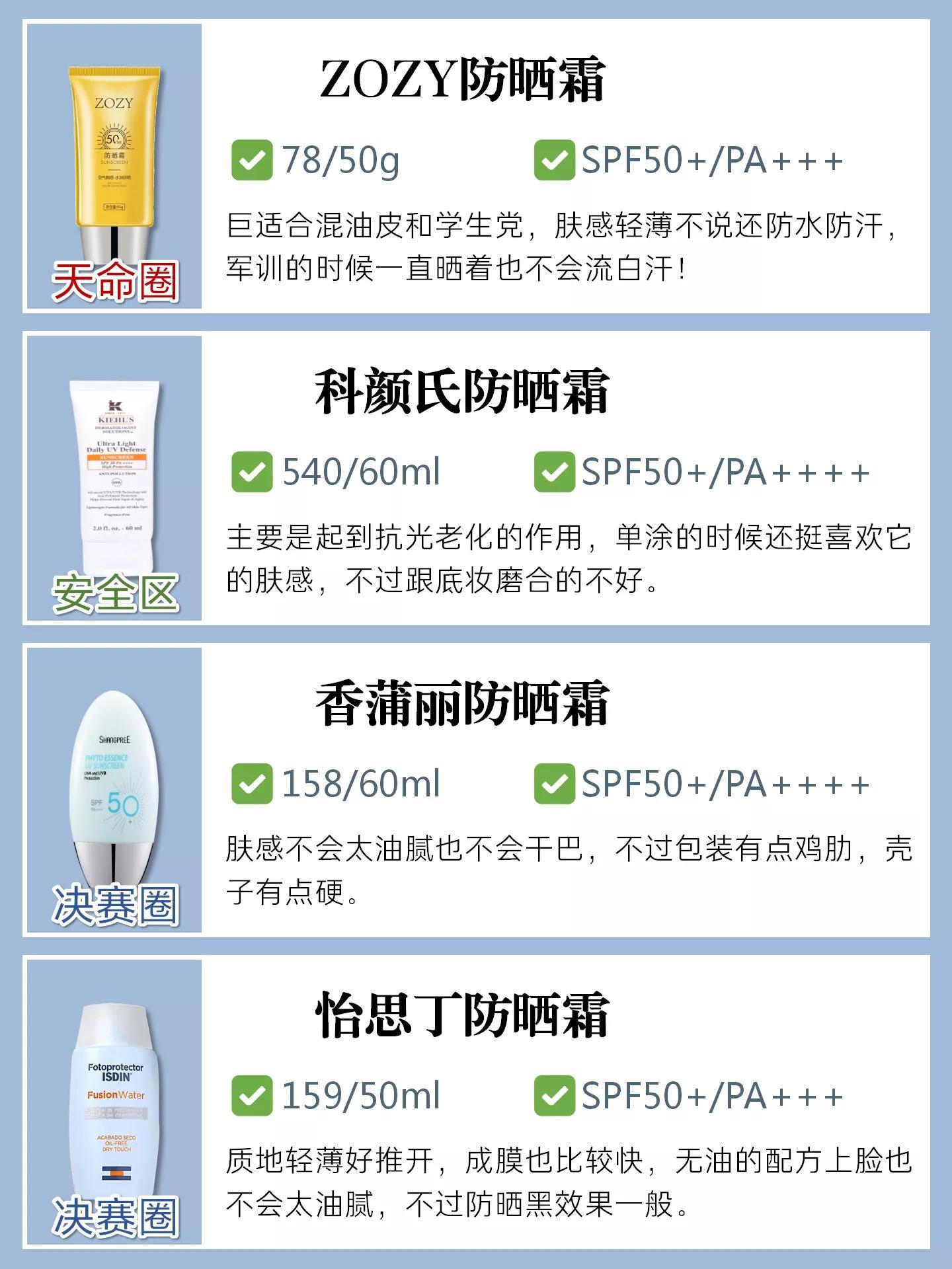 现在有很多平价好用的防晒霜 不比差多少