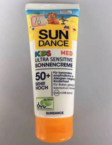 16、Sun Dance Kids Ultra Sensitive Sonnencreme SPF50+(SunDance宝宝敏感肌专用防水防晒乳高度防晒霜)(不推荐)