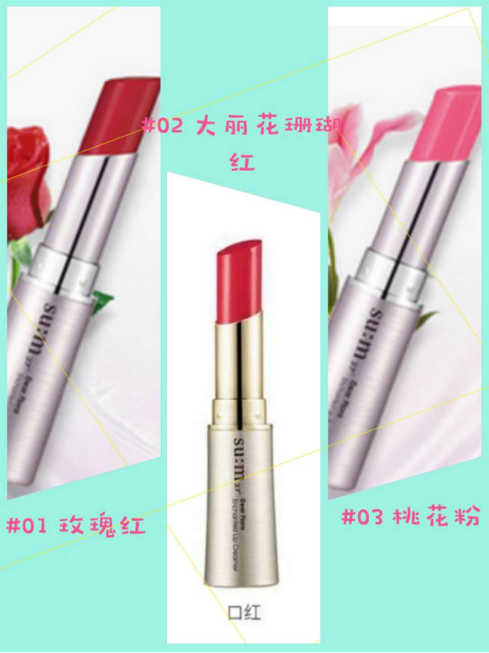 01是玫瑰红,显露无法移眼的高贵既视感。03是桃花粉,显气色之余还带些小性感!