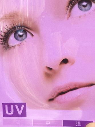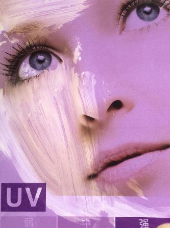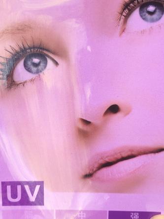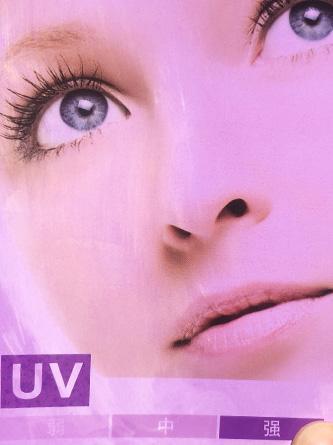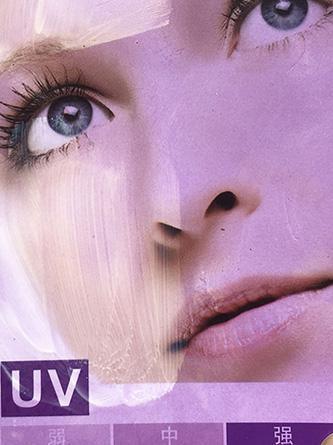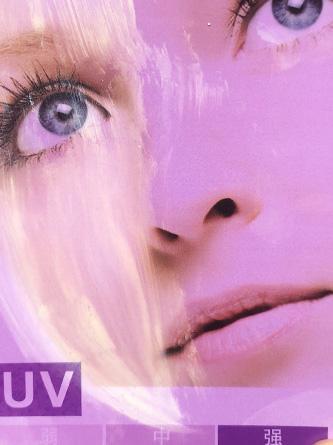 (将等量产品涂抹在紫外线测试卡左边部分,观察防晒果。)