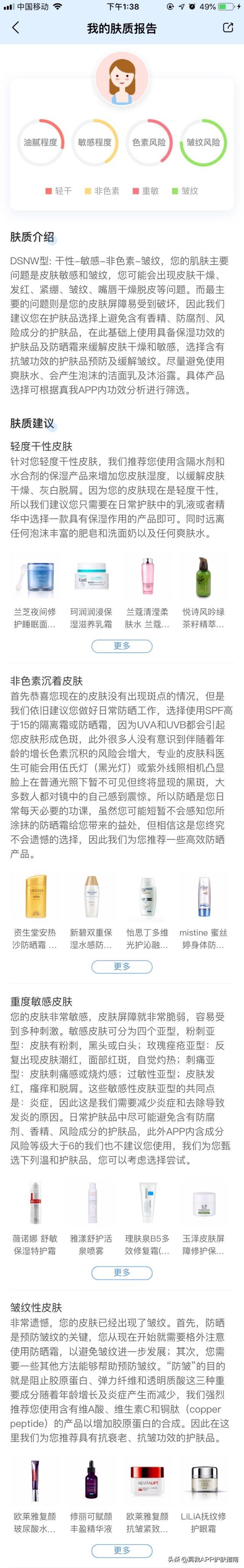 上图是是小编真我app的中截取的肤质测试结果,小编属于干性敏感肌肤,因此在选择洁面的时候,更偏重于氨基酸洁面,以小编为例,大家也对应下自己适合哪种类型的洁面吧。