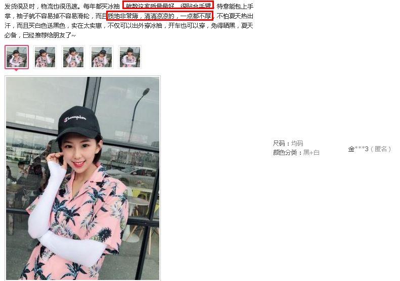 满足了夏天的穿戴感受,第二点考虑的就是冰袖防晒能力,毕竟防晒能力不行的话,再清凉舒适也白搭。