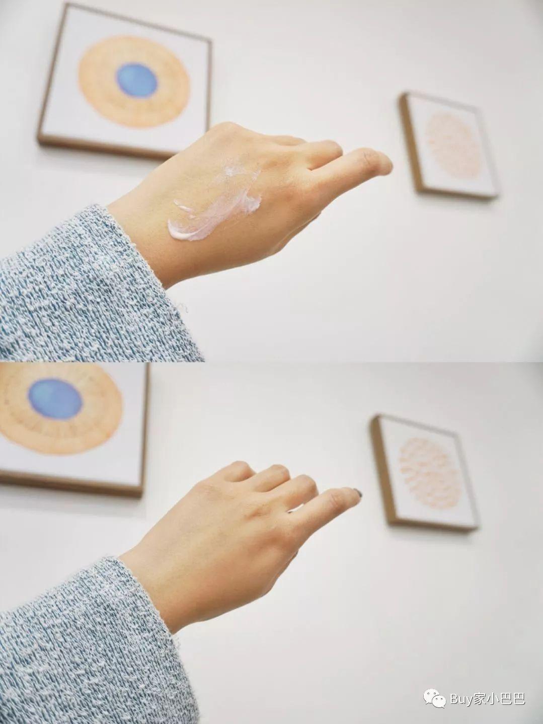 涂抹时会发现和面霜有点像,保湿力度也不错,水乳质地,流动性佳,涂抹均匀后无油成半雾面状态、不搓泥、没有成膜感,不会感觉闷闷的。属于半物理、半化学性防晒,不会死白反而有漂亮的提亮果。