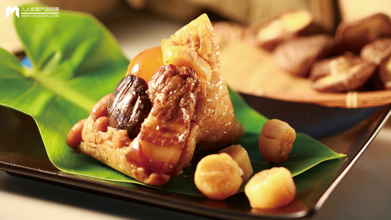 画面:这里摆放着肉粽、水晶粽、火腿粽和咸蛋粽。然后,再给每个粽子比拟成对应的职业岗位。