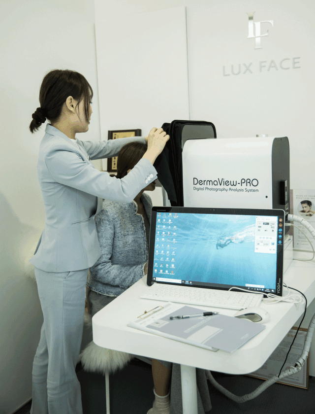 LUX FACE家的检测仪来自韩国科技感十足。这样1对1的量肤订制,才能深入了解肌肤状态,选择真正适合自己肤质的管理。