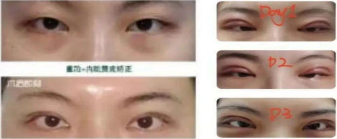 到了第二天,刘锦变成了多眼皮,而且眼皮勒着,眼睛无法正常闭合,她就向李博的助理反映,得到的回复是“现在还在术后恢复期,这是正常情况。”一周后,刘锦眼睛依然无法正常闭合,“疼得想自杀”,后来,她被确诊为干眼症、结膜炎、眼结石。