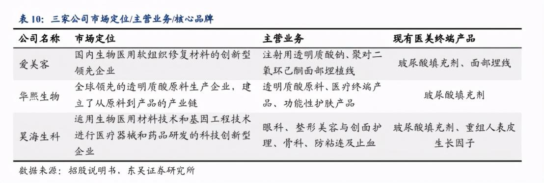 爱美客则“all in”医美,后续和等产品的拓展也是围绕医美。目前这几家公司体量都不大,前两家公司品类更齐全,爱美客在医美领域专注度更高。