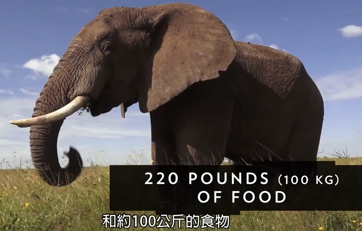 但是,大象的体型的大,每日要输入的食物也是属于“巨量”来形容。拿水来举例,每头成年象每天需要喝掉189公斤的水,而成年人每天需要1500ml,可想而知这个量的差距。每天的食物也要摄入100公斤。但是拉的“粑粑”却是那样轻盈。
