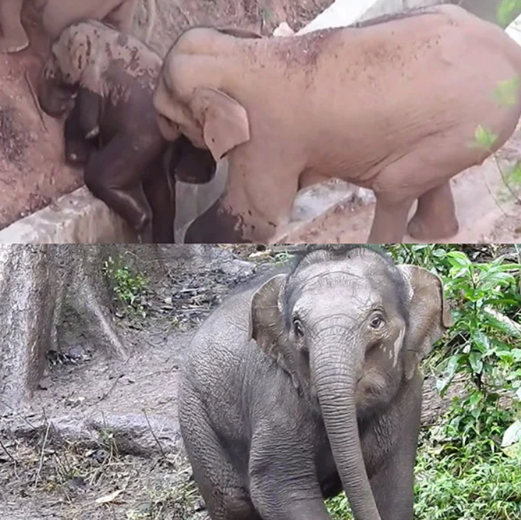 去年的这个时候还是个需要妈妈拱着爬坡的象宝宝,现在长得也越发壮实起来了,成为有模有样的大象了!