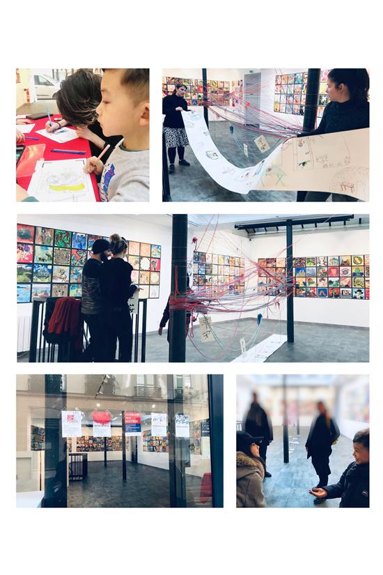 虽然法国现在陷入新型冠状病毒肺炎的疫情中,本次展览还是如期而至的拉开帷幕,展览期间在贯彻访客防护工作的同时也开设了4个主题的艺术工坊。巴黎当地小朋友与工坊老师耗时2天的时间做出两件艺术装置作品,致敬了日本前卫艺术家盐田千春Chiharu Shiota和阿根廷艺术家Tomás Saraceno。