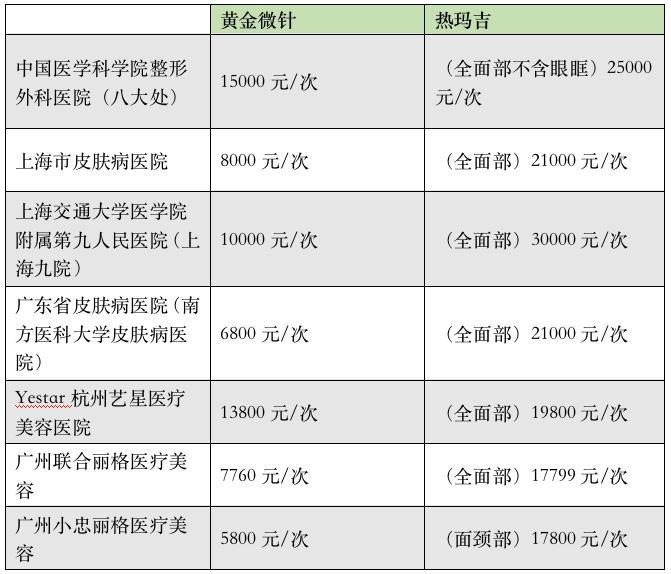而热玛吉则相对简单,因为其调节仪器单一,一般900发的价格在20000元以上,不同的医疗机构有不同的定价。据21新健康记者调查目前市场上主流医疗机构定价如下表。