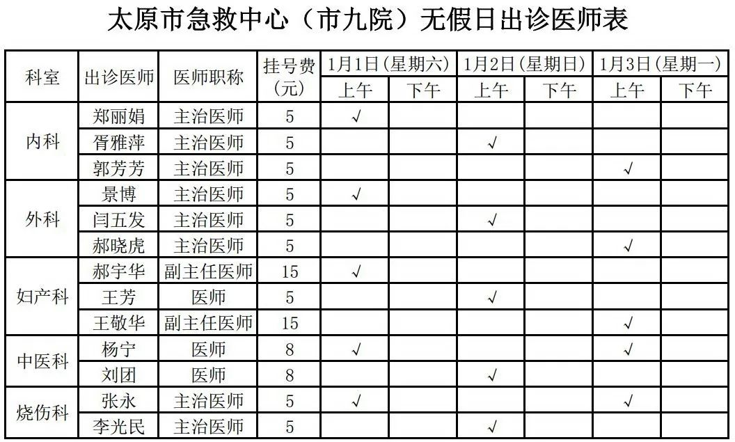太原市第九人民医院核酸检测时间:2022年1月1日-3日上午9:00-11:00,下午3:00-5:00。