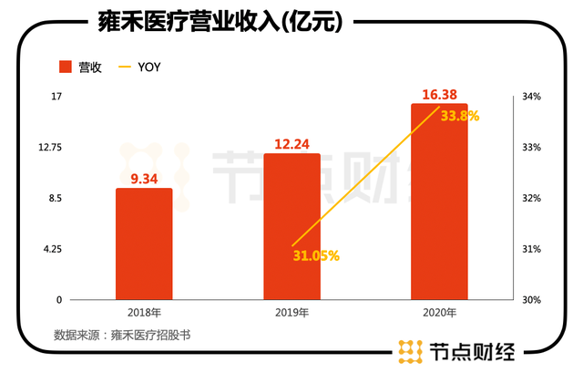 02、客单价超2.7万元,植发究竟有多赚钱?具体来看雍禾医疗的财务数据,招股说明书显示,2018年,雍禾医疗营收为9.34亿元;2019年,达到12.24亿元,同比增长31%;2020年,达到16.38亿元,同比增长33%以上。