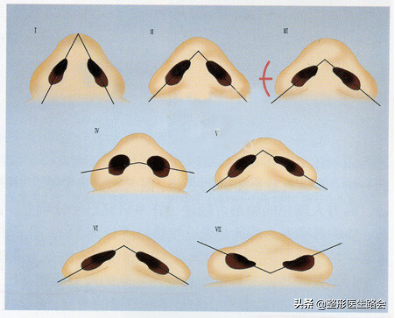 1、因鼻头部皮下脂肪和纤维组织厚,鼻翼软骨增生,两侧鼻翼软骨分开的角度过大及外侧鼻翼软骨往后缩所致。