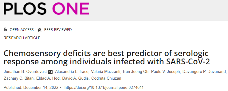 研究人员调查研究了306名大流行初期新冠肺炎感染康复者的血液样本,经过对比分析发现,那些抗体水平较高的人往往是报告失去嗅觉或味觉的人。这些患者失去味觉或嗅觉的可能性是血液中抗体水平不高于平均水平的患者的两倍。