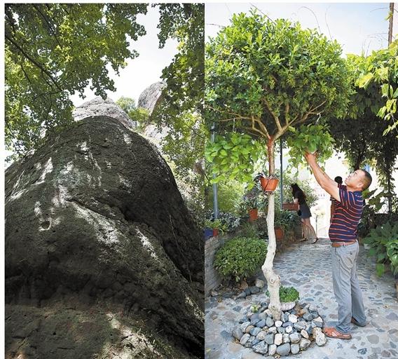 胡益民还采购了一块宽近两米、长约一米的大石头,并花了几天时间凿了个洞,在里面填上一层土,注入水,养起了铜钱草。